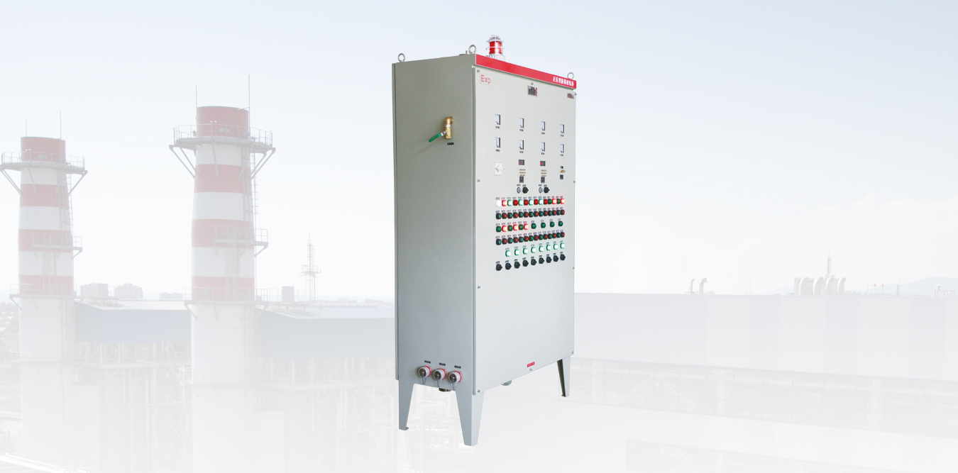 主要是采用介質隔離點燃源的防爆措施以及形成正壓保護從而達到電器防爆的目的;構上采用上可按用戶要求分別定制成箱式、琴臺式和柜式結構,柜式又分為上下結構和左右結構。箱式一般采用鋼板焊接而成,表面噴塑,前開門操作;琴臺式和柜式其柜架采用標準型材焊接,表面噴塑,對其各接合面都經過了特殊的密封處理;前開門操作后開門維修。